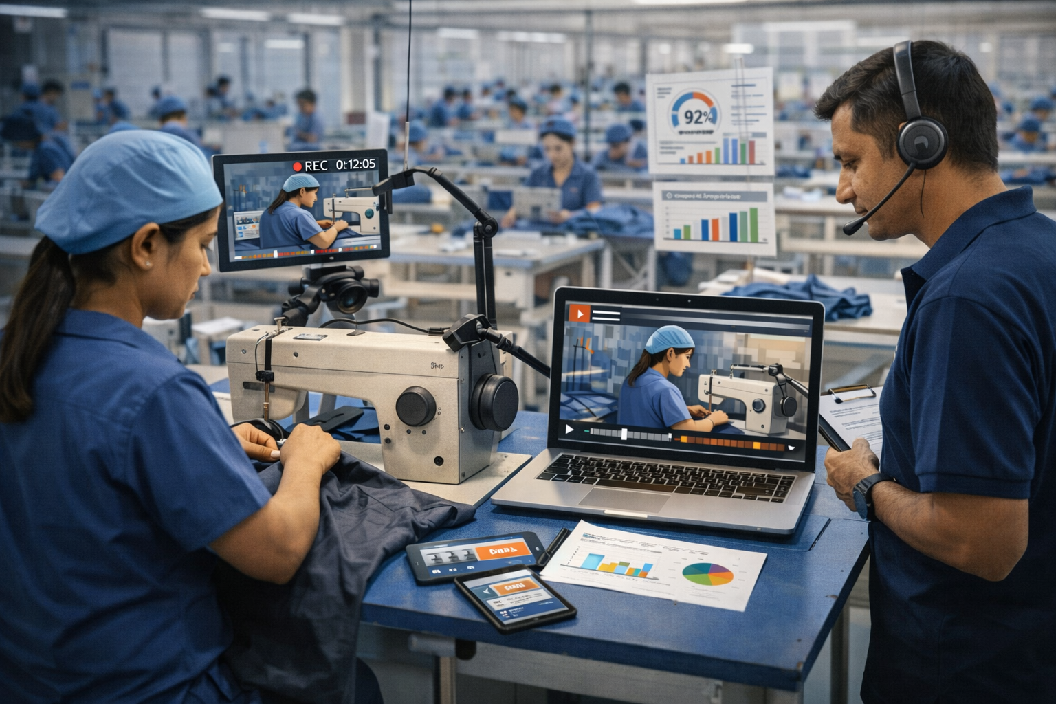 For apparel industry, video recording software for operation digitisation can be a game changer. There are many benefits in operation digitisation like improved line balancing, process improvement, operation standardisation, collaboration across locations. It helps companies to be competitive and enjoy increased profits. Helps increase efficiency, better collaboration within the factory and with the central office. Digital OB charts for sewing, cutting, finishing, and washing contribute to better planning, enhanced capacity utilization, and stronger decision-making through structured reports. When OB charts are digitally shared and discussed, they support improved achievement of production targets. Digital OB is particularly beneficial in finishing, cutting, and washing operations. Once digitized, the data can be easily shared across multiple locations, fostering stronger team collaboration and helping uncover hidden capacities within the organization.